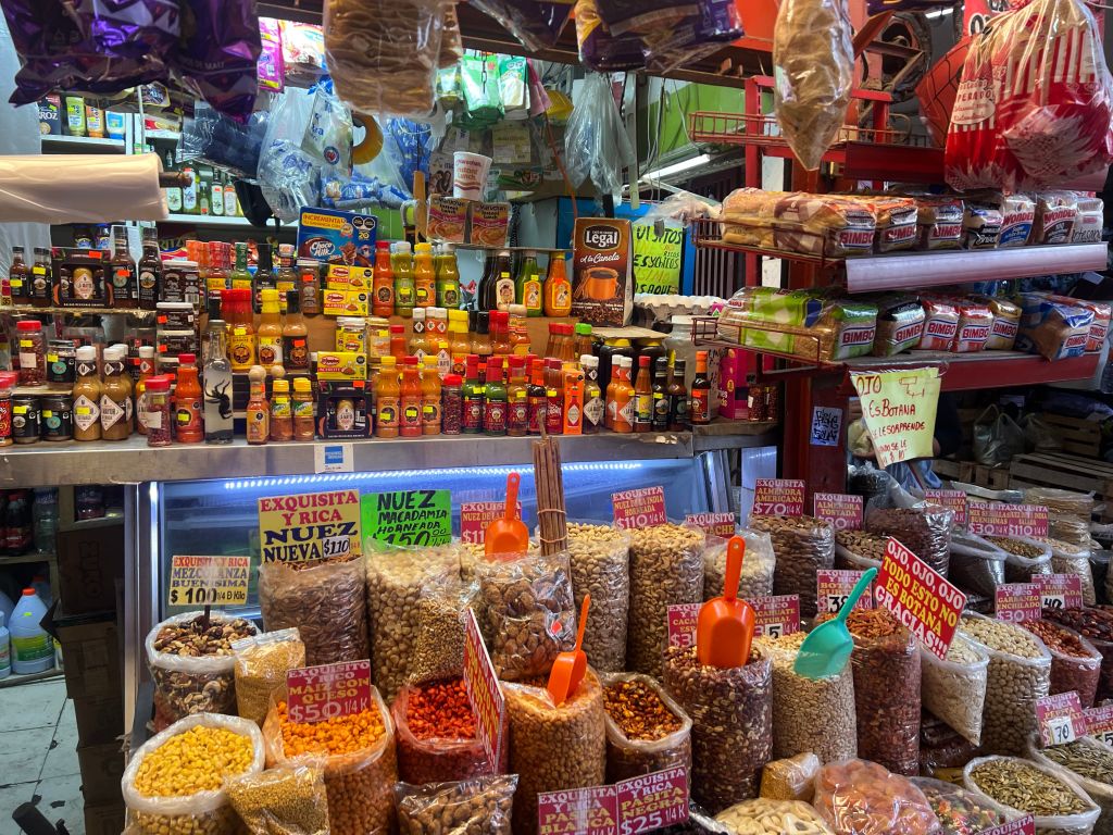 On our market tour booked through Viator, we maneuvered through small aisles of one of the local markets, where produce, herbs, toys, and candy were piled high. While in the back of the pack, Breck and I stopped in our tracks.